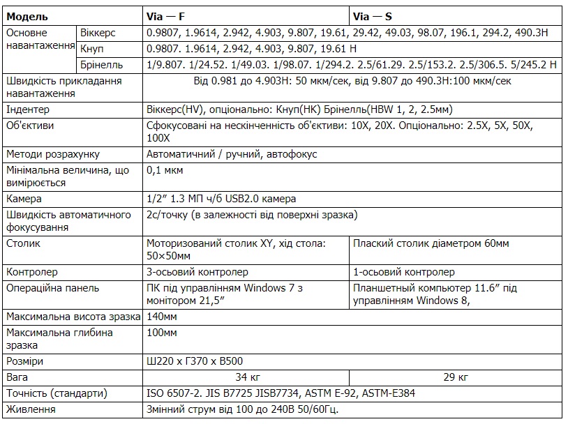 Мікротвердоміри серії Via (вимірювання за Віккерсом)