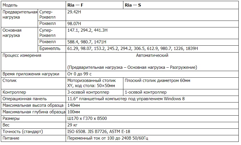 • Регулируемая нагрузка в диапазоне от 147 Н до 1840 Н с шагом в 0,98 Н, регулируемая предварительная нагрузка в диапазоне от 29 Н до 98 Н с шагом в 0,98 Н